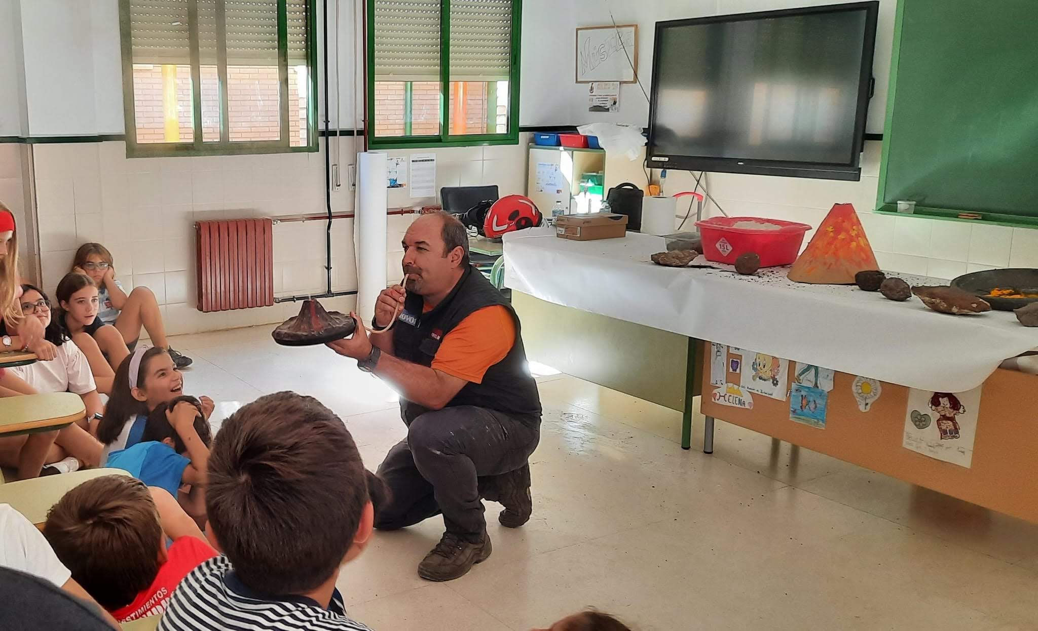 Para culminar esta actividad, el viernes, 6 de octubre, los/as alumnos/as de primaria disfrutaron de unos talleres de volcanes de la mano del Grupo de Investigación Geovol (Geomofología, Territorio y Paisaje de Regiones Volcánicas) y la UCLM.